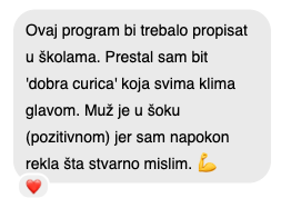 Nikada nije prekasno. Tvoj obrazac traženja potvrde je mehanizam preživljavanja koji si naučila, što znači da se može i "odučiti". Ovaj program ne radi na površinskim promjenama, već na temeljnim uvjerenjima i tvom odnosu prema vlastitim emocijama, učeći te kako da postaneš vlastiti izvor sigurnosti.